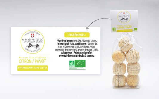 Macaron Artisanal bio au Citron et à la graine de Pavot - Sachet de 150 g